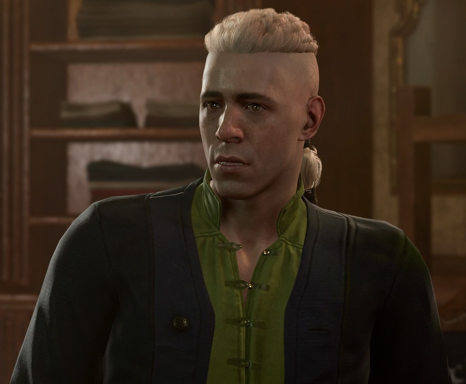- ↑ Naaber does not always approach the party first, nor does he always follow them around. For example, if first approached by a fighter and choosing the conversation option, "Here's a tip from a real fighter - less talking, more fighting." Naaber comments on finding something to punch, ends the conversation and remains by the tall mirror. If he does not follow the party, further interactions can still be held with him there, progressing through all the class options and (eventually) earning the unmarked quest.