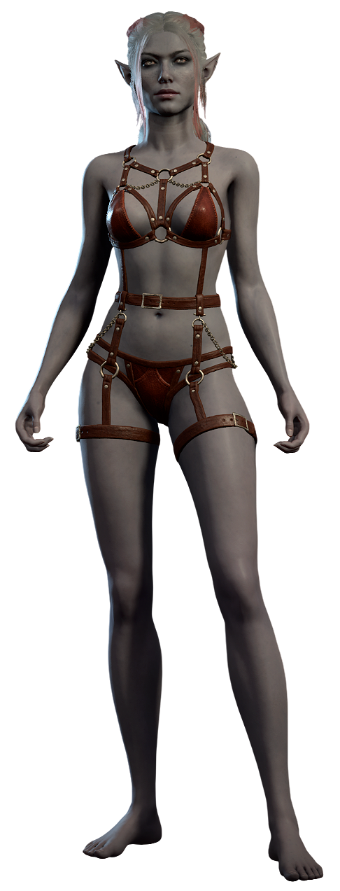 Nym Orlith is a Seldarine Drow sex worker employed at Sharess' Caress, where she works alongside her twin brother, Sorn OrlithSorn Orlith.