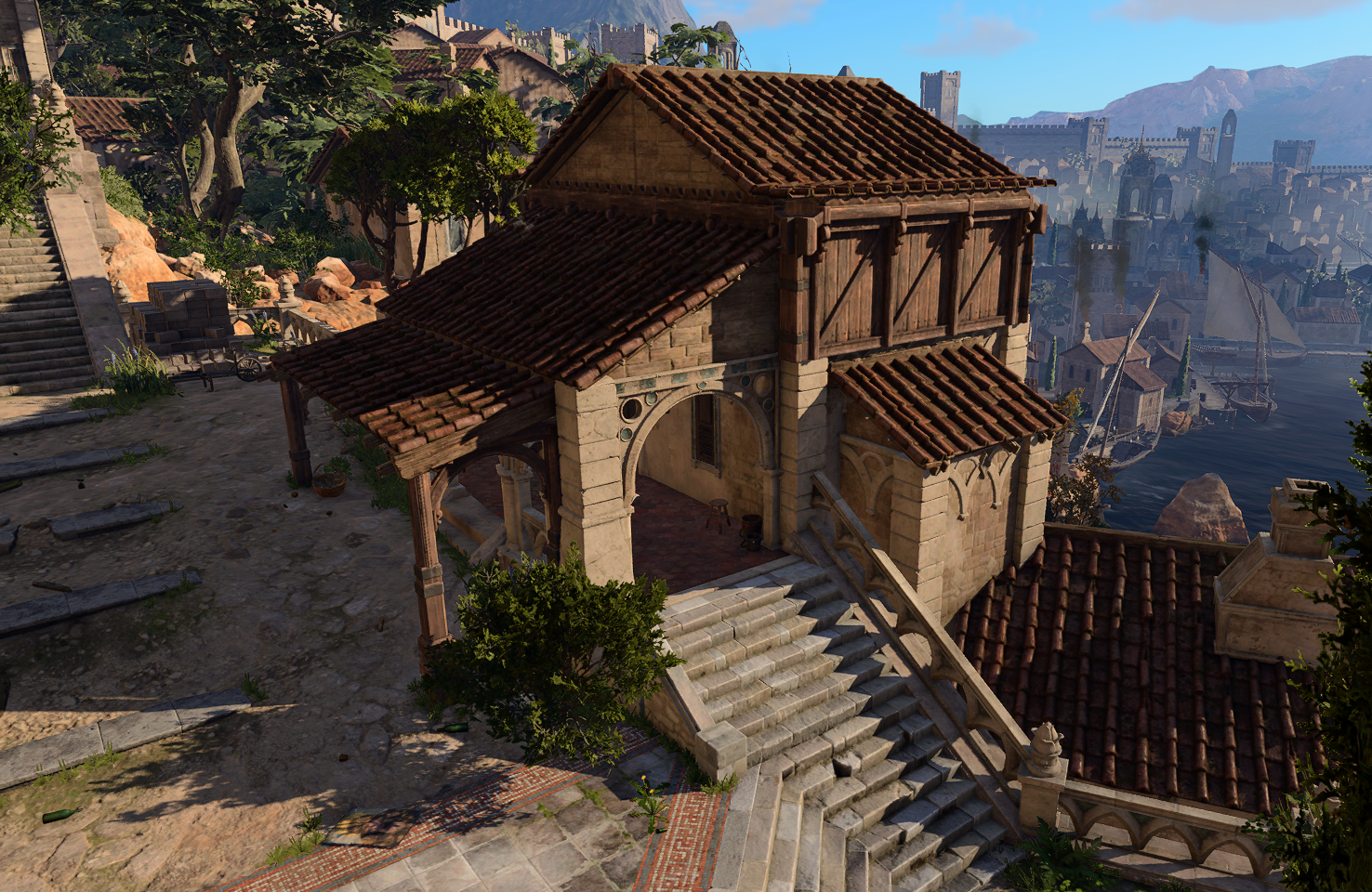 The only entrance is at X: 55 Y: -79. It is red-outlined, and breaking in without means of concealment inevitably draws the attention of the guards. One of them, Fist Ernestus, stands constantly near the Baldur's Mouth corner, and the building is in his direct sight.