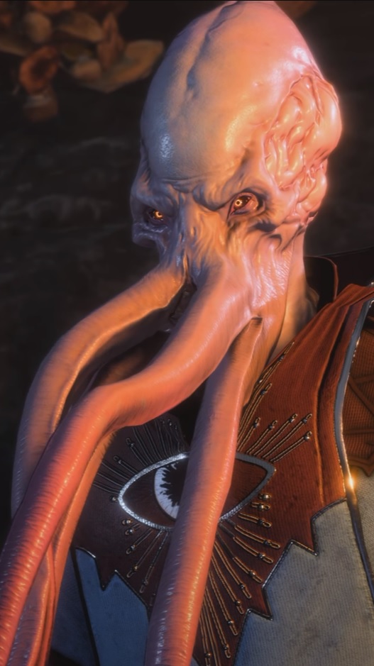 Omeluum is a friendly Mind Flayer and trader in Baldur's Gate 3. Omeluum comes to the Ebonlake Grotto in the Underdark after being contacted by Blurg. It is a member of the Society of Brilliance and can be asked to help remove their tadpole.