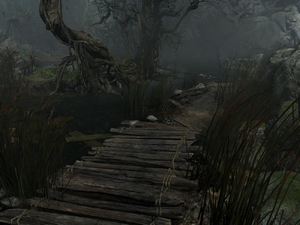 The Sunlit Wetlands appear to be a peaceful and picturesque location south of the Blighted Village and of the Forest. It features a calm water stream, finding its way into a bigger river via a widespread, branched delta, and a small Riverside Teahouse, where Auntie EthelAuntie Ethel, a trader from the Hollow, is waiting to welcome even the unexpected guest.