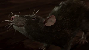 Ratin Sesescor is a buoyant rat who is randomly running around the ground-floor and second-floor rooms within Rainforest's Home. If spoken to through Speak with Animals, they say Alexander had been their "cheese-dropper" until the "man in red" came and caused him to drop "some tasty red morsels" instead of cheese. The Cheese Record book lying on the table next to the bed sheds some light on Ratin's palate. If the player character asks whether Ratin realises that it ate human innards, they cynically mention that Alexander does not need them anymore.