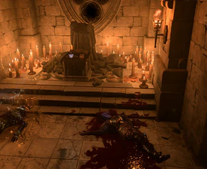On the first floor, with a DC 10 Perception Check, the party can spot another copy of the Bloodstained Parchment with the list of murder targets, lying conveniently near the basement hatch.