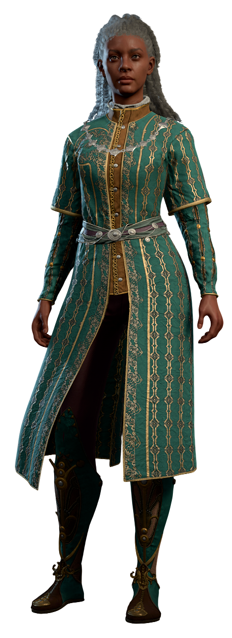 After the ceremony ends, Lady Ruth stays near the throne, listening to several other guests discussing the Steel Watch with Gortash and Ulder Ravengard, but not taking part in the conversation too much. If spoken with, she praises Gortash as the "man of the right people" and says that the citizens are untouchable under him as an Archduke.
