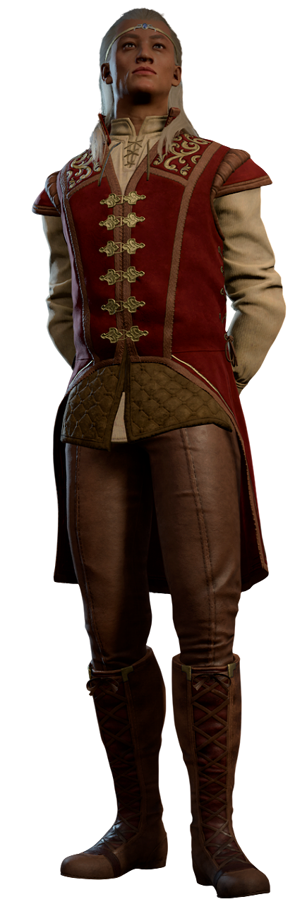 After the ceremony ends, Lord Sarken moves to the northern nave of the Audience Hall and stands near the middle table with refreshments. If spoken to, he is more concerned about coins in his own coffers, than about the well-being of the city, and expresses hope that Gortash will see to keep his (i.e. Eomane) family's fortunes safe.