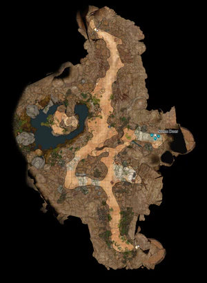 Warrior Gresh recognises Sazza and faults her for the failed Grove raid. He and his group become hostile and must be defeated to proceed. To exit the Underground Passage, the party can follow the path to the stone door at the other end at X: -422 Y: -236.