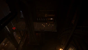 There are two Steel Watchers guarding the front entrance - one which patrols the front and western side of the building, and another which stays on the western side near the loading dock. The Steel Watcher patrolling the front can easily be avoided by lockpicking the front gate and enter the front door while the Watcher is on the western side.