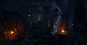 The Outpost is a possible point of accessing the Underdark. It can be reached descending from the Shattered Sanctum. It is not possible to enter the Defiled Temple via the outpost if the path has not been already opened from the other side. Thus, this route cannot be used to infiltrate the Goblin Camp.