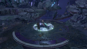 The location called the Nightsong's Prison is the only area of the Shadowfell which is accessible in-game. Inside the Gauntlet of Shar the party can travel to the Shadowfell by going through The Verge of Shadows and stepping into the water called Shadowfell Entrance. This brings the party to the prison, which is a path across multiple floating islands down to a plateau where the Nightsong can be found.