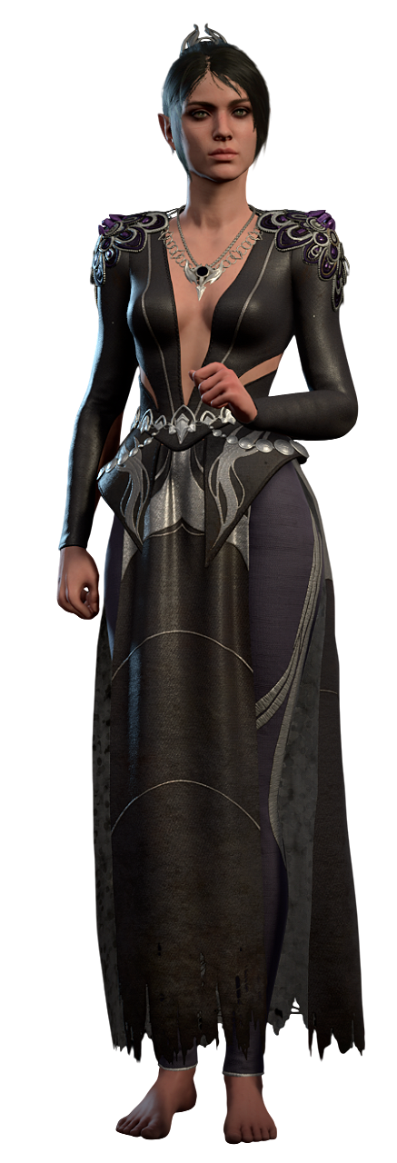 Zealously devoted, independent and headstrong, Shadowheart prefers pragmatic solutions to problems, decisive action in the face of uncertainty and remaining uninvolved in the affairs of others. While she initially seems guarded and reserved – hesitant to reveal information about herself – she is in fact amnesiac, with little memory of her own past. Fiercely devoted to Shar, she does not tolerate slights against her goddess, often reacting defensively. Trained in Sharran ways, she is also not above forceful, ruthless actions, duplicity or even killing in order to achieve her goals.