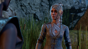 - ↑ In some conversations at camp, companions such as Astarion may comment on Shadowheart's appearance and desire for physical contact with her, or express their agreement if the player character says they feel the same.