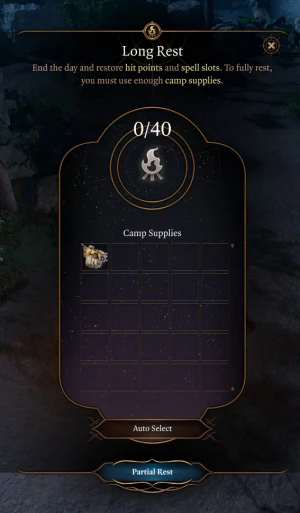 If lacking the required supplies, the party can instead take a partial rest, which restores the following: