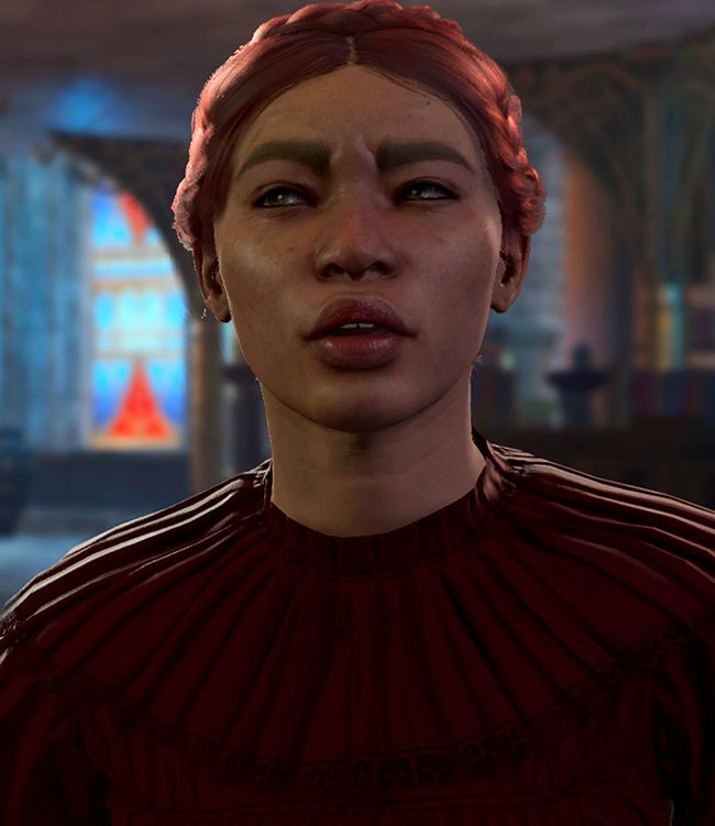 Shuna Huanje is a dwarven customer of the Sorcerous Sundries shop in the Lower City in Act Three.