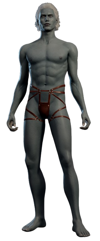 Sorn Orlith is a Seldarine Drow sex worker employed at Sharess' Caress, where he works alongside his twin sister, Nym Orlith.