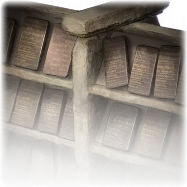 Stone Tablets is a static clutter container that cannot be picked up or moved. Usually empty or containing various books, and scrolls.