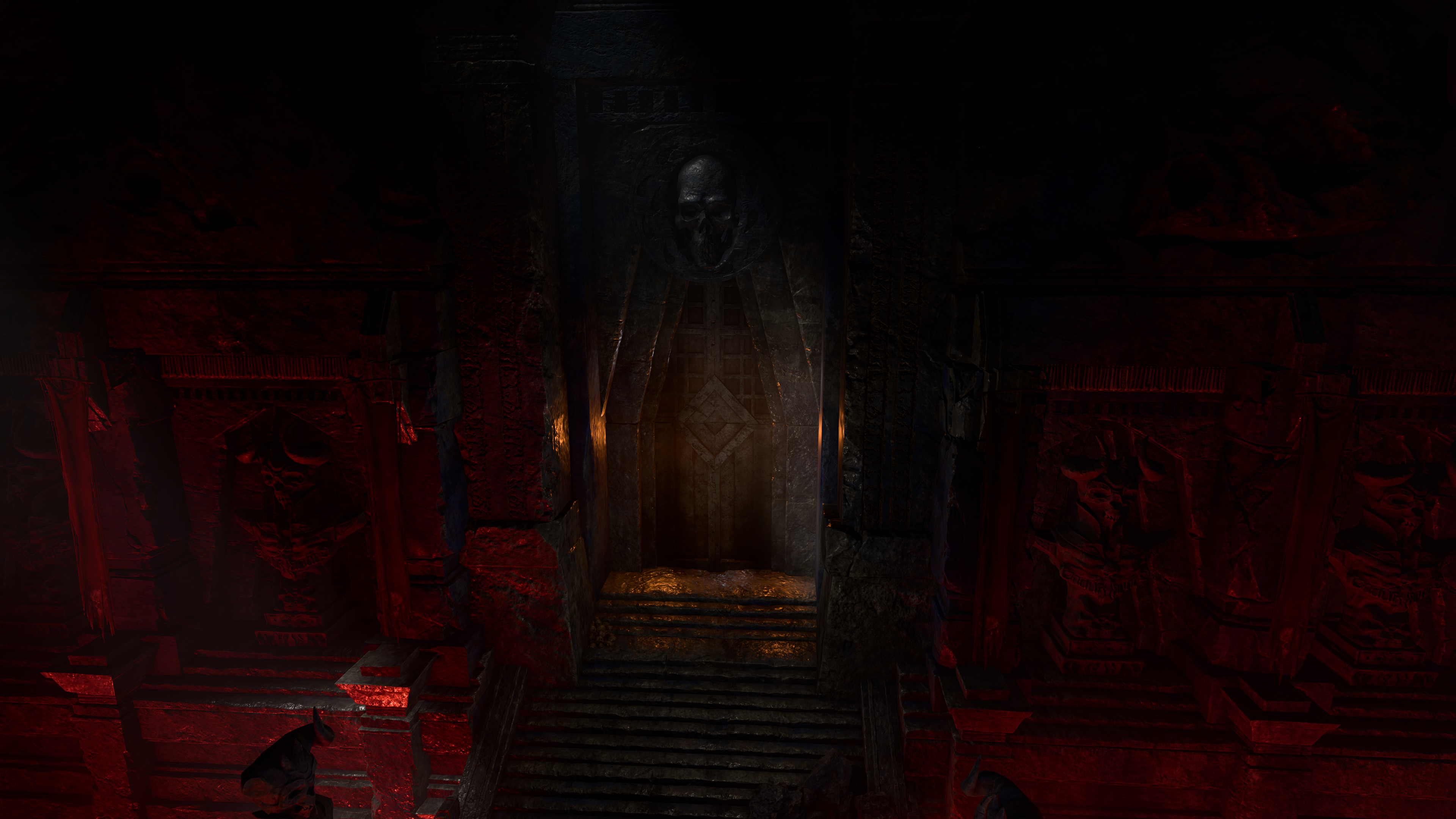1. The large BhaalBhaal icon at the temple's entrance is the backdrop for the game's main menu.