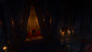 Going down from either sides of the forks brings the party to the Altar of Bhaal. On the northern side is a hidden passageway which allows access to the Chosen's Room without going through the altar (and the potential fight).