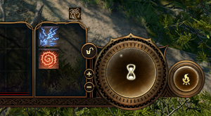 Temporary flag on the keyboard and mouse interface. Shown in this image are Activate Call Lightning and Sorrowful Lash. Temporary is a spell flag. Actions with this flag are placed in a dedicated section of the hotbar on the right-hand side. This flag is generally used for actions temporarily granted by spells and conditions such as recastable spells like Activate Call Lightning.