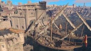 Docks line the southwestern perimeter of the Counting House. They can be reached through the door at X: -114 Y: -193 connecting to the antechamber descending into the vaults, or from the southern end of Flymm Cargo and the eastern end of Water Queen's House. Being spotted by any of the dock patrols, which include two Steel Watchers, at best results in ejection, and at worst in a fight.
