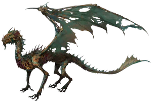 Undead dragons are an extremely rare type of dragon that are reanimated from the corpse of a deceased dragon. They appear like they did when they were living except most of the flesh has rotted away, leaving behind a skeletal structure. Despite the lack of flesh, they can be just as terrifying as they were when alive.