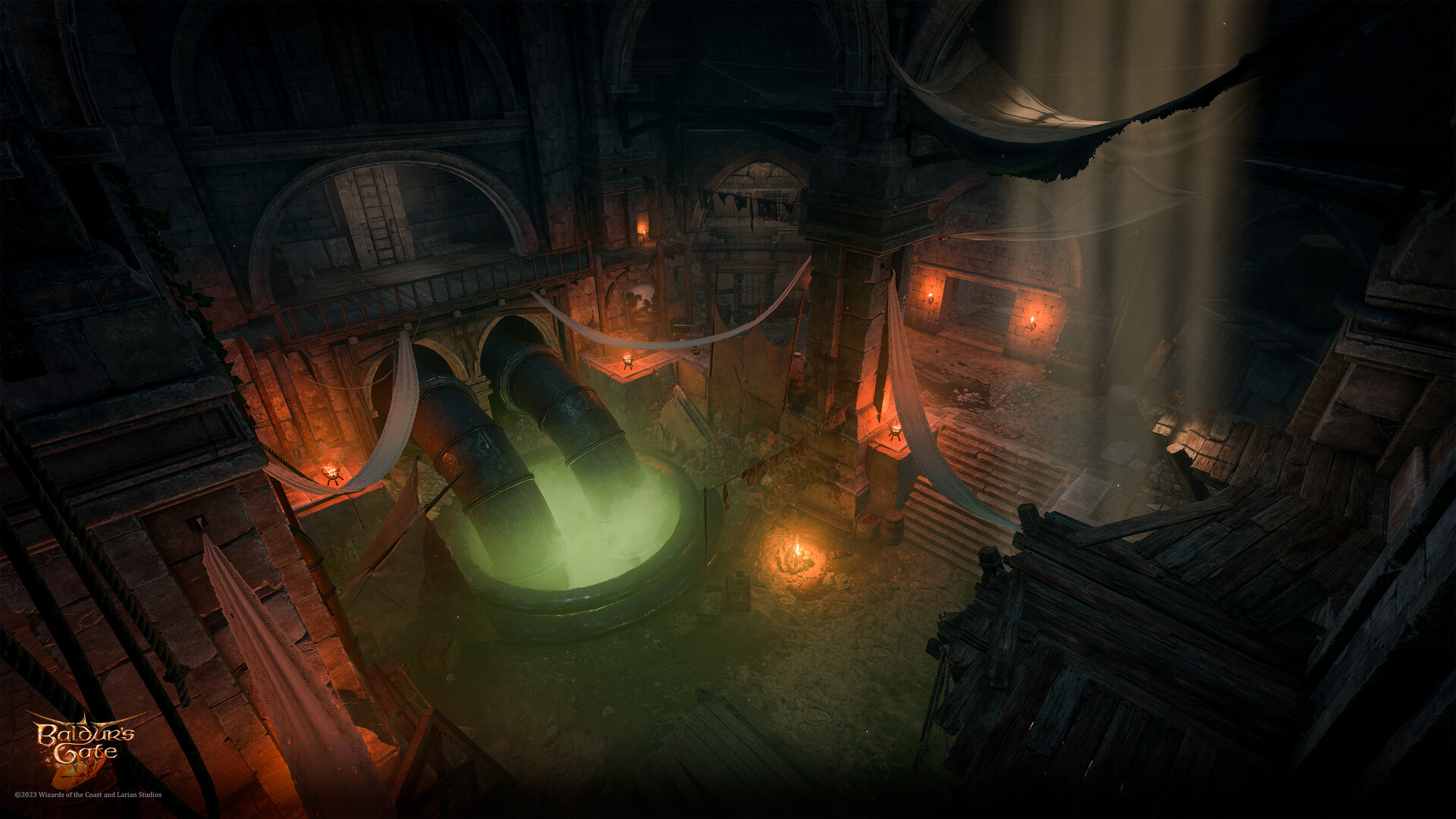The Undercity is the seedy underbelly of the Lower City of Baldur's Gate featuring the crumbling remains of ancient cities. It is filled with various shady characters, undead, and temples to evil deities or other undesirable elements that the city above (or the denizens themselves) would prefer to keep hidden from its citizens.
