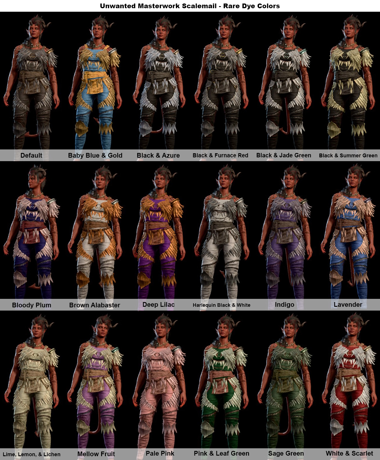 The Unwanted Masterwork Scalemail is a rare Medium Armour that doesn't limit your AC's Dexterity bonus. It is part of the Unwanted set.