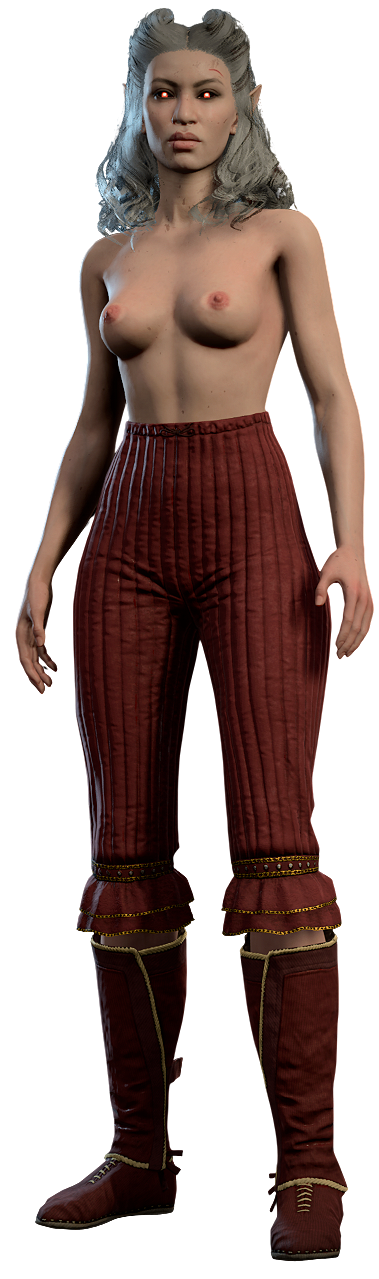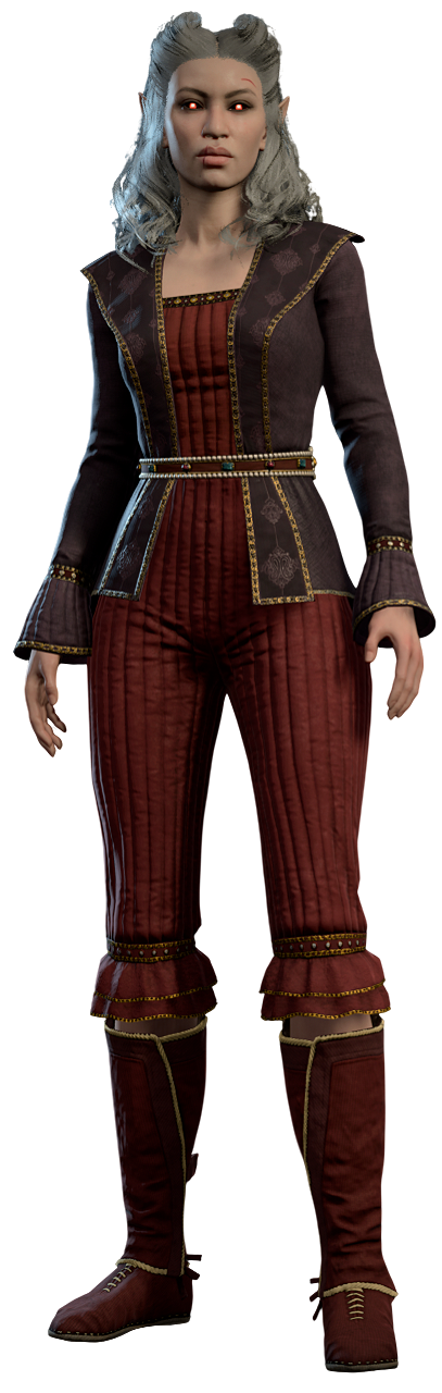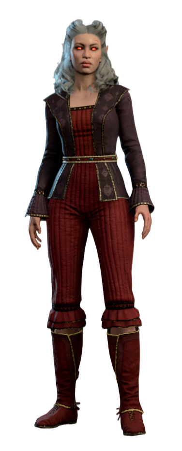 Violet is a vampire spawn bound to Cazador, and one of Astarion's siblings. She may appear at camp or Cazador's Dungeon during Act Three.