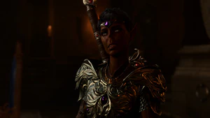 - ↑ The game asset used for the portrait item is a renamed version of the painting item "Portrait Of A Woman". Dialogue with Wyll implies that this portrait is still accurate to what she looked like, albeit at a younger age.