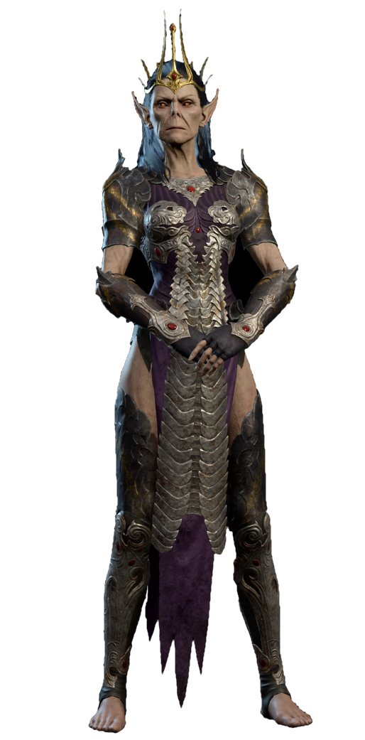 Vlaakith CLVII is the current and undying ruler of the githyanki. She oversees their operations in all the planes, and at the time of the events of Baldur's Gate 3, is actively seeking the Mysterious Artefact that was stolen from her. She can also be chosen as a patron deity by githyanki clerics.