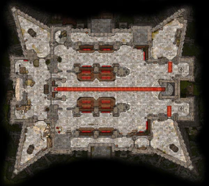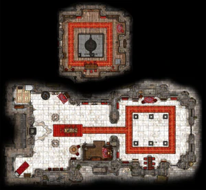 Gortash chambers consist of his personal apartments and an antechamber. The antechamber features six busts of legendary leaders of Baldur's Gate. One of these busts depicts "The Cockeyed Stranger", as Bane who first appeared before Enver Gortash [2]. At the eastern wall is a movable ladder which is initially raised to the upper gallery, but can be lowered via a lever up there.