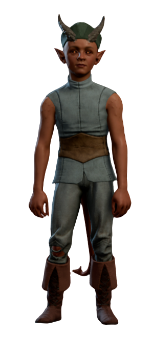 Zaki is a tiefling refugee seeking shelter at the Emerald Grove in Act One.